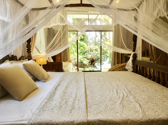 - 5 double bedrooms, each with its own terrace or balcony overlooking the lake or tropical gardens — including a floating apartment set on catamaran hulls and a traditional earth house