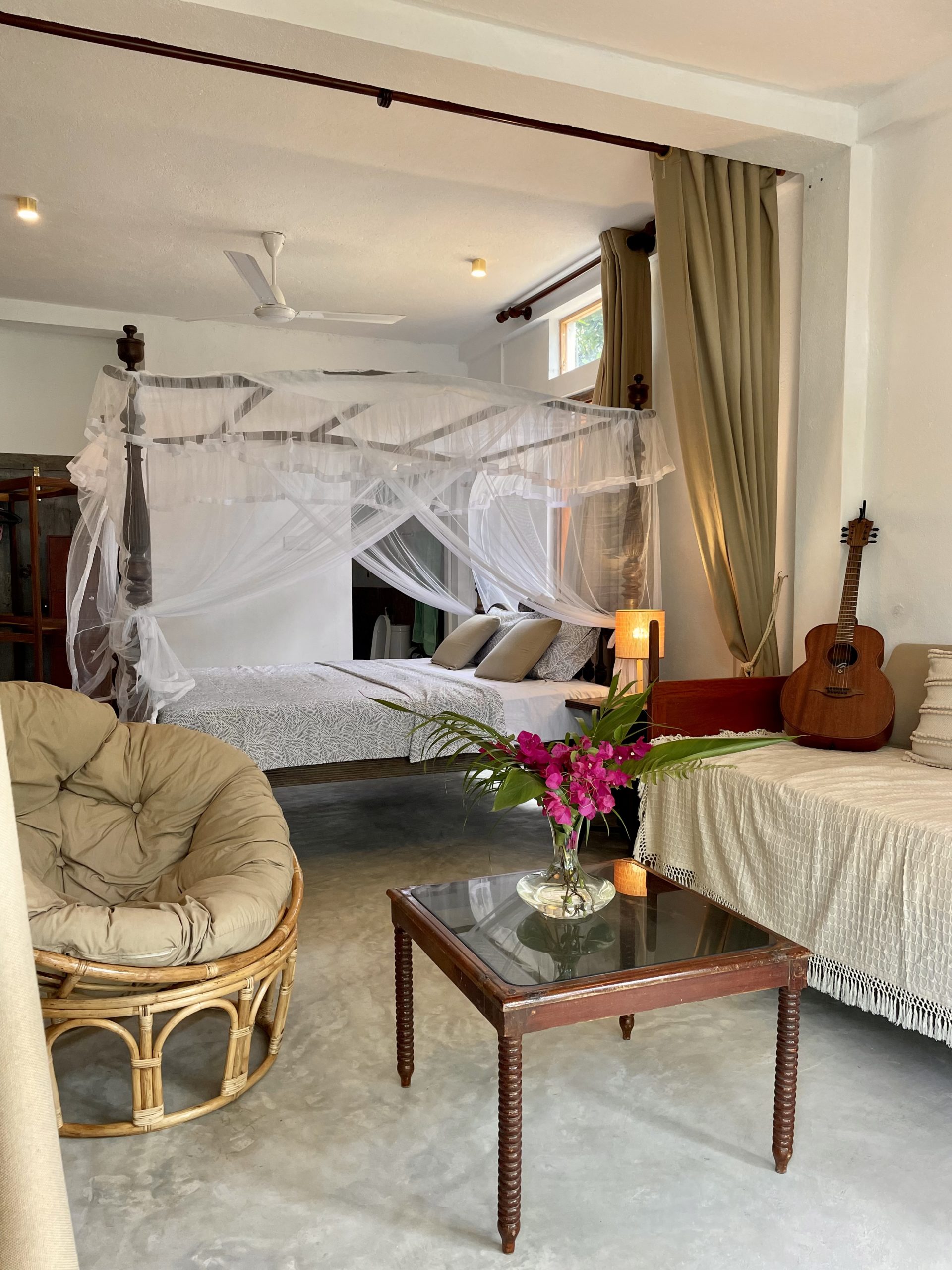 Step outside to a hammock strung between two palm trees, perfect for quiet mornings or evening relaxation. From the garden, watch local fishermen cast their nets at sunrise. A timeless glimpse into Sri Lanka’s soul!